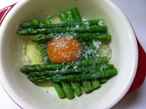 半熟狀のを崩し、アスパラガスに絡めながら食べましょう
