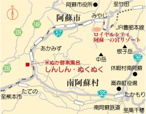 アクセス ロイヤルシティ阿蘇一の宮リゾートから約18km、車で約30分