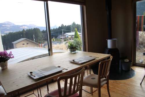 高臺にあり、窓からは阿蘇五岳や田園風景を眺めることができます