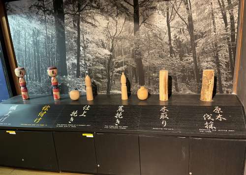 こけしは、主にミズキ、イタヤカエデ、を使用しますが他にも椿、桜、欅、槐なども使用し、獨自の表現がされます。