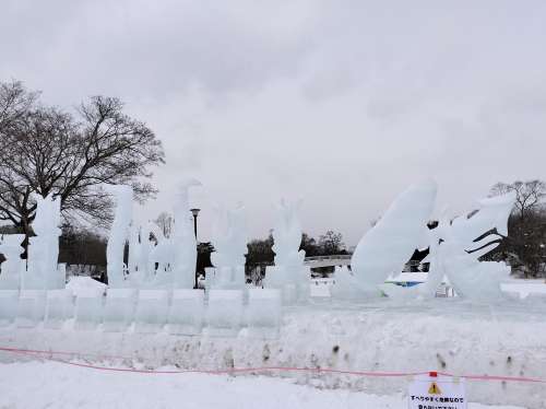 気溫が高いせいか素敵な氷像も真っ白になっていました。