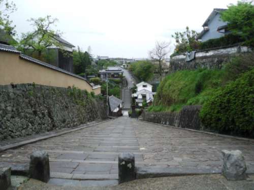 石畳がとても美しい緩やかな坂で、武家屋敷の壁なども趣を感じます。