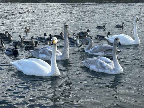 白鳥の中には白い白鳥と灰色っぽい白鳥がいます。