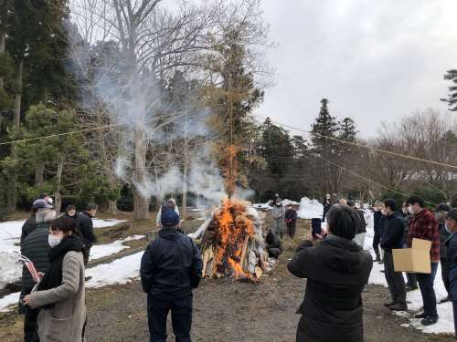 お正月飾りやお守りなどを燃やす炎で、 神様をお送りし 今年の無病息災(zāi)?家內(nèi)安全等を お祈りする行事に地域の方や別荘オーナー様?shù)?、沢山の方が集まりました。