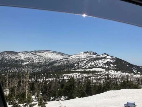 山の上にはまだ雪があり
