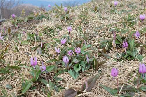山頂付近はカタクリの群生地として有名で、4月下旬から5月初旬にはカタクリの花を見に來るたくさんの登山者でにぎあうそうです。