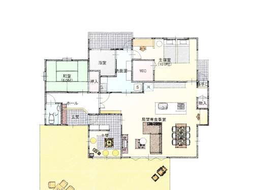 囲爐裏の部屋と大きな溫泉のある平屋のおうち