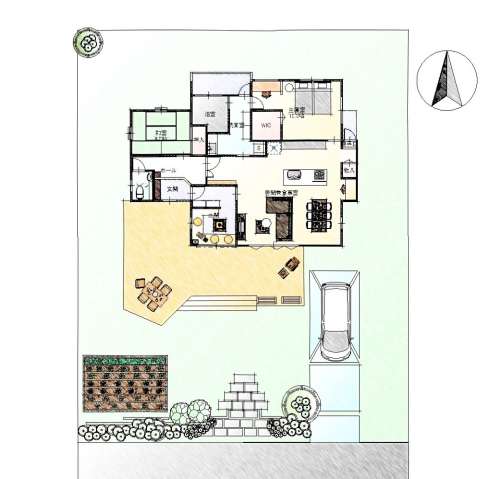 ④長(zhǎng)方形の敷地は無(wú)駄なく活用する事ができ、庭のゾーニングから駐車(chē)場(chǎng)まですっきり設(shè)計(jì)する事も楽になります