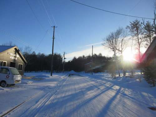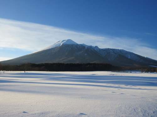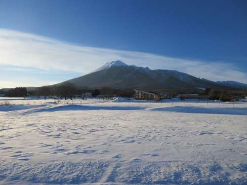 ■巖手山と牧草地(分譲地より約1km〜約2.1km) 積雪時朝日が昇ると、雪面が一面金色に染まります