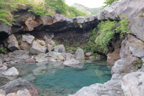 駐車場の橫にあるミニ滝です。