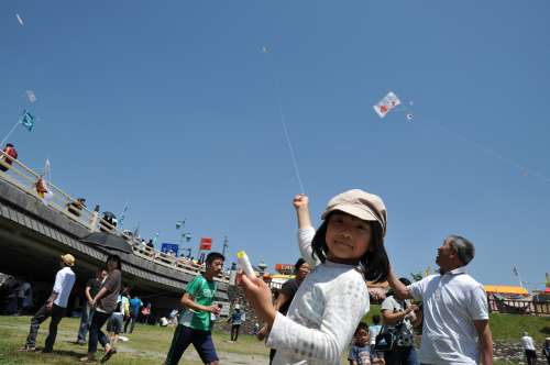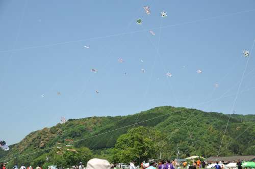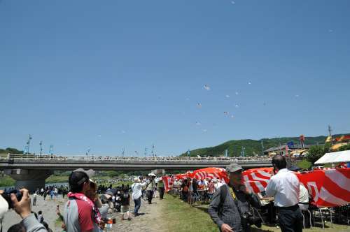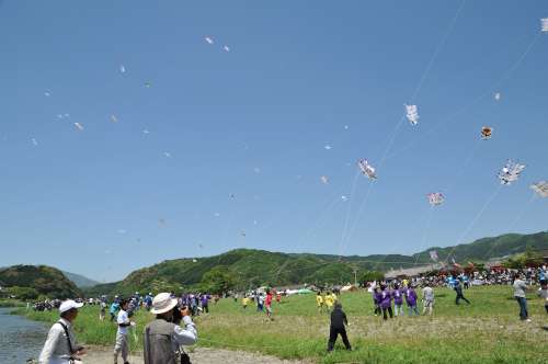 『小田川』の両岸から數百統もの大凧が空中に舞っています。