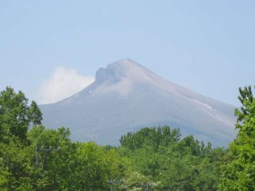 毎年この時期に山にはまだ雪が殘っています。下界は葉が生い茂り、もうすぐ夏がちかづいてきています。昨日、今日、朝から晴天です。気溫も2日続けて20度超え、少し初夏かなと感じられます。