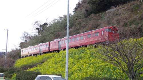 みなさん、こんにちは。 松山市內(nèi)から佐田岬の方面に向けて瀬戸內(nèi)海の海岸線沿いを走っていると、毎年2月から3月 にかけて、愛(ài)媛県伊予市のJR伊予上灘駅からJR下灘駅の間の一部ののり面に、 一面に咲いている菜の花を見(jiàn)ることができます。 まだ満開(kāi)ではありませんでしたが、車(chē)を止めて寫(xiě)真を撮影していると、 なんとグッドタイミング 一日4便しか走らない「伊予灘ものがたり」の列車(chē)が走ってくるではありませんか ※「伊予灘ものがたり」は簡(jiǎn)単に説明しますと、レトロモダンな車(chē)內(nèi)で、 車(chē)窓から伊予灘の海を眺めながら、愛(ài)媛の特産物のお食事が楽しめる観光列車(chē)です。 おー、車(chē)掌さんも、お客さんも、やさしく手を振ってくれています。 私も手を振って返したかったですが、 寫(xiě)真を撮ることで精一杯でそれどころではありません。 そうこうしているうちに、「伊予灘ものがたり」は ゆっくりと、やさしく松山方面に走り去っていきました。 その時(shí)手を振れなかったので、今ここで手を振って返したいと思います。 ■上記の寫(xiě)真はすべて平成31年2月撮影 ■閏住の菜の花畑:ロイヤルシティ佐田岬リゾートから約58㎞(車(chē)で約1時(shí)間4分)