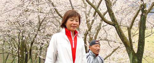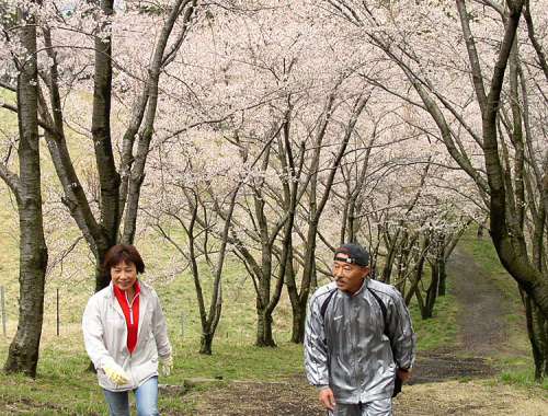 この日は、桜が満開の阿蘇青少年交流の家のトレッキングコースを散策。
