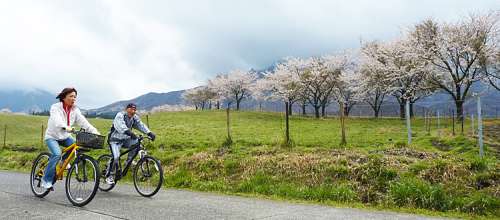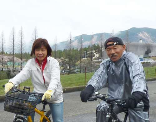 13:00 ご夫婦でサイクリングへ。阿蘇へ移住したのを機にマウンテンバイクを購入。