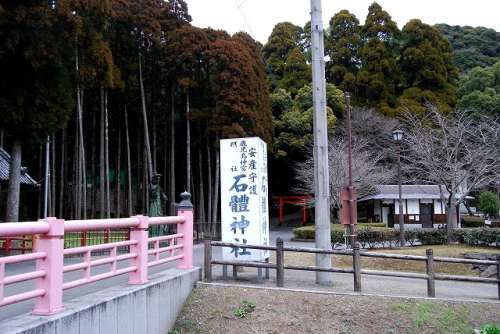 「石體神社」は 鹿児島神宮御祭神である山幸彥の妻である豊玉姫命(とよたまひめ)が ご子息で鵜草葦不合尊(うがやふきあえずのみこと)を出産する際に、 とても安産であったという神話に因んでいます。 また、神功皇后(しんぐうこうごう)が 朝鮮半島へ出兵した時には お腹の中に子ども(第15代天皇応神天皇)が いましたが、 石を腹に巻きつけて 戦い勝利したという話があり、 「いわた帯」 の発祥の地ともいわれています。