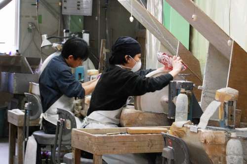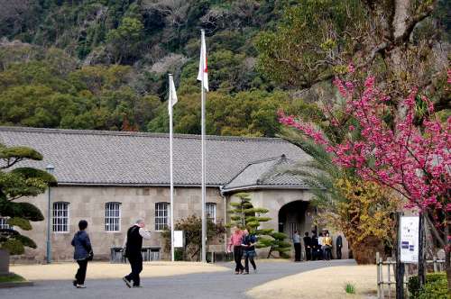 1863年(文久3年)斉彬の亡くなった後、 生麥事件に端を発した『薩英戦爭』で、 イギリス軍の圧倒的な軍事力と技術力を思い知らされた薩摩藩は、イギリスとの和平交渉の過程において、藩の軍事力を強化するため軍艦の購入を決めました。 斉彬の遺志を継いだ島津久光(ひさみつ)と藩主の忠義(ただよし)は、西洋の文化や技術の導入を加速させ、1864年(元治元年)6月には藩営の洋學校「開成所」を設け、西洋の技術を學ばせました。學んだ技術で稼働させたのが、この機械工場である「集成館」です。 1865年(元治2年)3月には、 國禁を犯してまで19名の使節(jié)や留學生をイギリスに派遣しました。 1923年(大正12年) 「集成館」は「尚古集成館」 (しょうこしゅうせいかん)と名を変え、薩摩藩が行った近代化への事業(yè)に関する歴史的資料や、島津家の800年に及ぶ歴史の資料などが集められ、現(xiàn)在に至っています。 150年も前に西洋の工業(yè)力を學んだ薩摩。 數(shù)々の工業(yè)製品の展示には當時のもの作りに対する姿勢がうかがえます。 (殘念ながら館內(nèi)は撮影禁止でした。) 建築の材料には、鹿児島で古くから塀などに使用されていた、溶結凝灰?guī)r(ようけつぎょうかいがん)がレンガの代わりに用いられており、當初から「ストーンホーム」と呼ばれていたそうです。鹿児島県內(nèi)に現(xiàn)存する建物の中では、最も古い洋式の工場と言われ、國の重要文化財に指定されています。 2015年には、 舊集成館に関する史跡が明治日本の産業(yè)革命遺産として 世界遺産に登録されています。 反射爐跡は 「仙巌園」の中にあり、 基礎部分の石垣が今でも殘っています。 反射爐のレプリカとそこで造られた150ポンド砲のレプリカが鎮(zhèn)座していました。 當時、鶴丸城下に配備された大砲のサイズは、 砲身長4.56メートルで 重量8.3トン、 最大飛距離3,000メートルで、薩英戦爭に使用されたそうです。 尚古集成館に隣接して、 鹿児島の伝統(tǒng)工蕓品の一つ 「薩摩切子」の工場とショップが 「磯工蕓館」。 職人の方々が それぞれの工程に分かれ、 美しい光を放つ切子を丁寧に作っていました。 薩摩から徳川家へ嫁いだ、あの「篤姫」も嫁入り道具の一つとして持參したそうです。