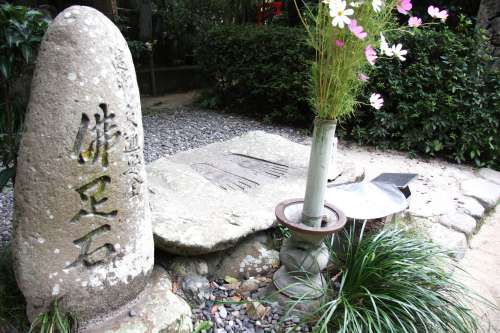 仏手石には智恵や技能のご利益があり、文章を生業としている人たちの參拝が多く、