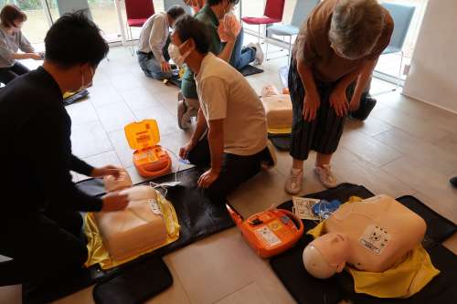 どなたでも利用できるように、シェアサロンの前にAEDを設置したことにあわせて、皆様に使い方を學んでいただく企畫です