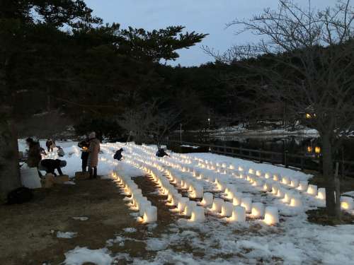 2月11日(土) 『スノーキャンドルin大成池2023』を 開催しました。 開催日數日前から、 積雪がほとんどなく、 雪の量が心配されましたが、 今年は 約1000個のキャンドル を完成することができました