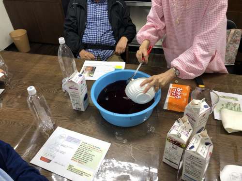 參加されたオーナー様と協力しながら、トラップ液を作りました