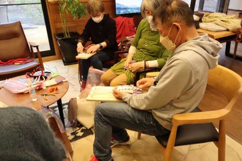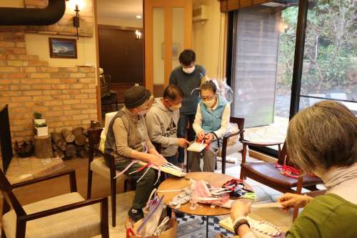 「わらじ風」布ぞうり教室の続きです。 3回目の始まりです。 5本指ソックスの意味がこの作業にあります。 欠かせない作業ですが、勇ましい恰好ですので、 少々、小さく掲載します。 鼻緒をつける前に、形を確認します。 (どこで間違ったのかな?うーんのようなシーン?) 鼻緒をつけていきます。大橋様の丁寧なアドバイス。 ぞうりが少しずつできあがる過程を拝見させていただき 今回の材料である「使われなくなった布」と「日本の文化」 そして「匠(タクミ)」の融合を感じています。 教室はまだまだ続きます。 ではまた。 撮影年月2022年3月 阿蘇一の宮リゾート內