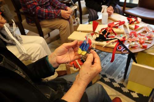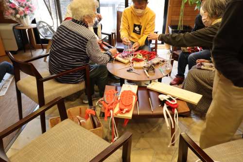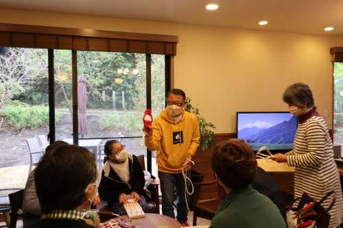 「わらじ風」布ぞうり教室最終回です。 自宅でも作業の成果を持ち寄って仕上げに入ります。 ほぼ完成した形がこちら それぞれ完成した後、先生から卒業課題がだされました。 このミニぞうりを3人一組で作ること このミッションを楽々クリアーしたあと。 大橋様からサプライズプレゼントがこちら 公平に「あみだくじ」で選択 大橋様が作った「ミニチュアぞうり」です。 観光地のおみやげで売ってそうな位、緻密 最後に、記念撮影です。 それぞれの作品を手に達成感あふれる目元です。 「わらじ風」布ぞうり教室御卒業 おめでとうございます 撮影年月2022年4月 阿蘇一の宮リゾート內