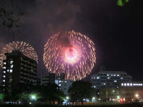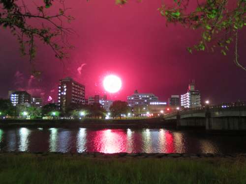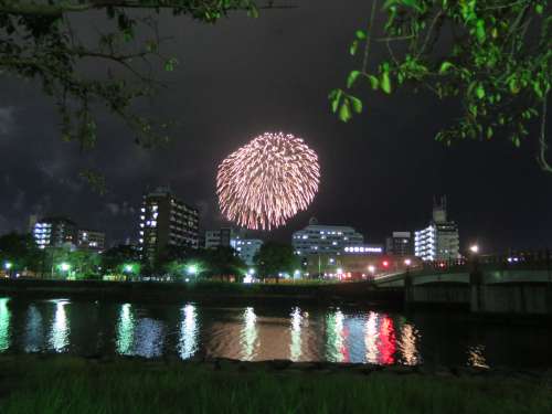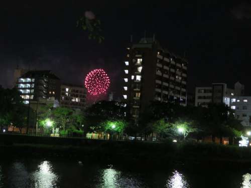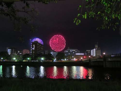 今回は、花火大會の指定席の予約が取れなかったので、住まいの近くに流れる甲突川の河川敷から花火を見ました。河川敷でも多くの方が見物に來られていました。