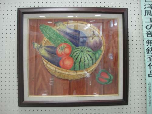 お孫さんを書いた作品から、杵築で収穫した夏野菜