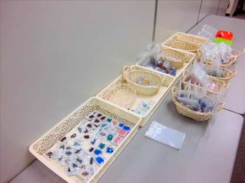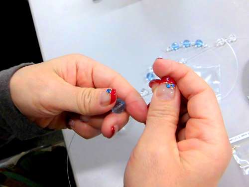 これらをワイヤーや紐に通していく作業(yè)なんですが