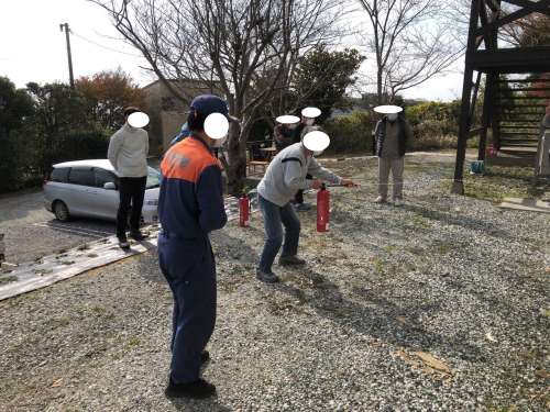 その後は駐車場にて水消火器により消火訓(xùn)練を?qū)g施しました。