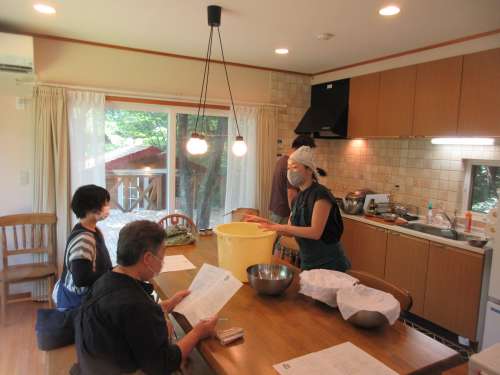 みんなでワイワイと大豆を潰しあっという間に出來上がり