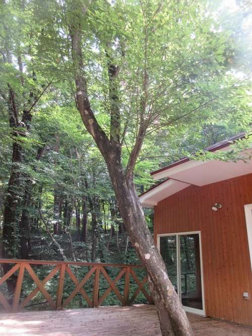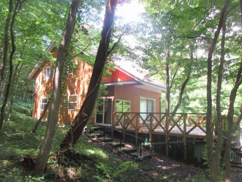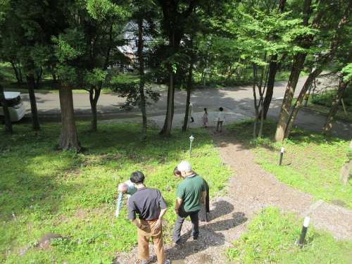 ■宮城蔵王ショートスティハウスの敷地內をガイド協會の方と散策