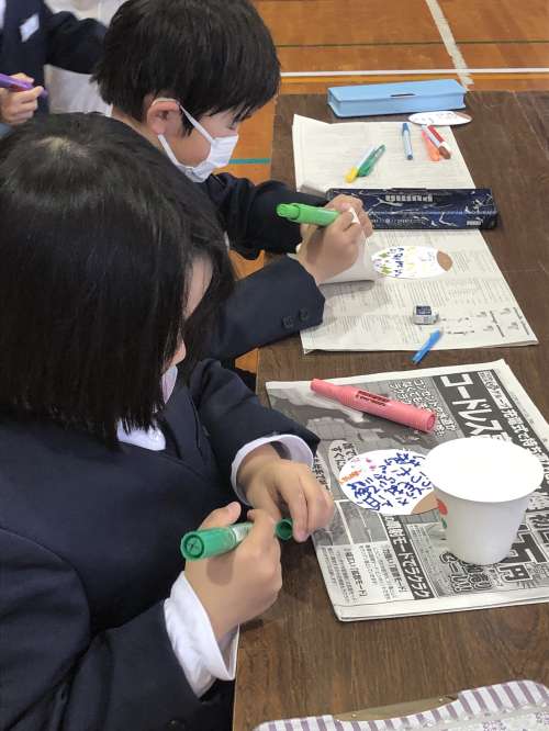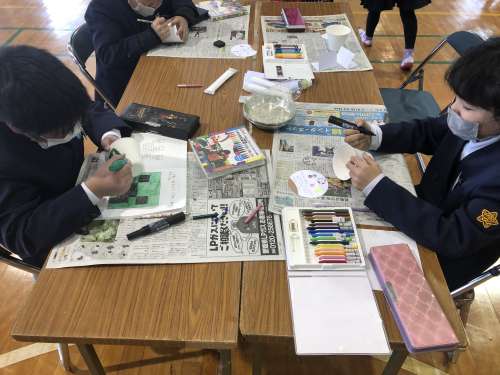 先生方にもお手伝いをいただきましたので、みなさん手際よく絵とメッセージカード