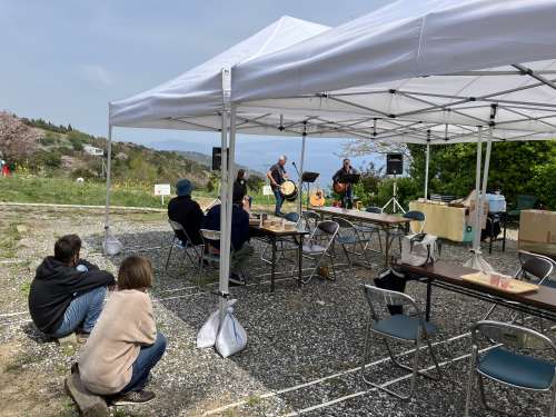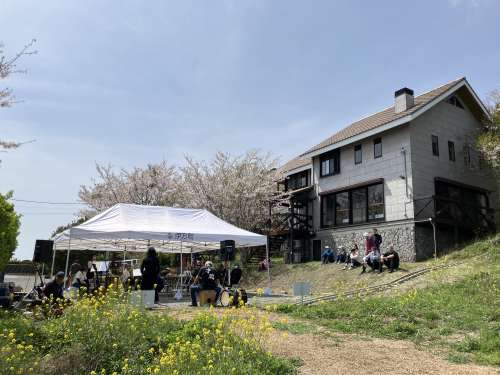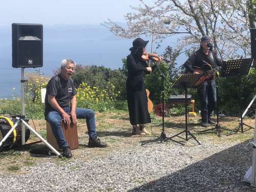 お越しいただいたみなさまは桜と宇和海の景色を歌を聴きながら飲食をしながら