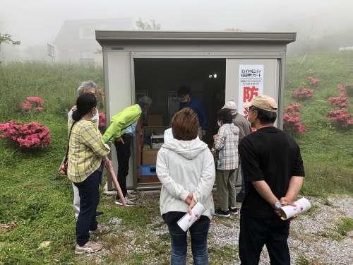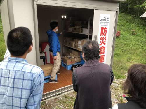 最後は、実際にリゾート內に弊社が設置している防災倉庫の內覧&備蓄品説明會