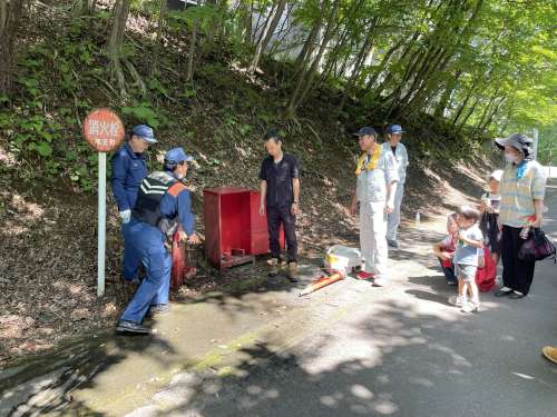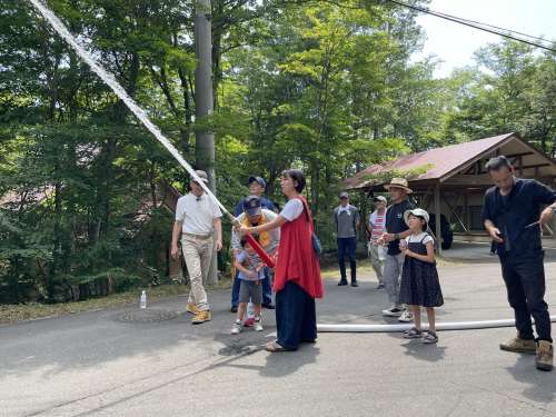 消防ホースの扱い方を皆さん熱心に聞いておられました