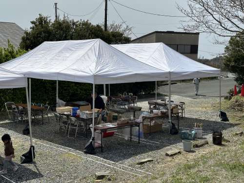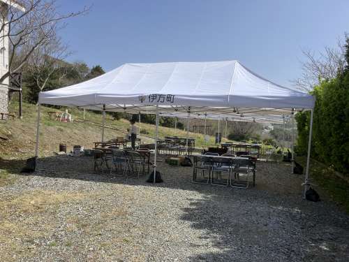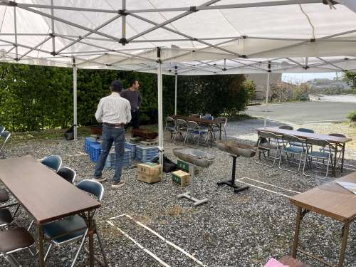 會(huì)場のテント、イス、テーブル、BBQコーナーが出來上がりました