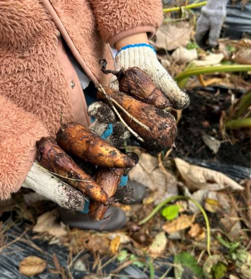 そんな中サロンの敷地內にある畑でオーナー様とお子さんとで一緒に芋掘り體験をしました