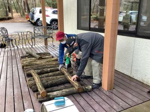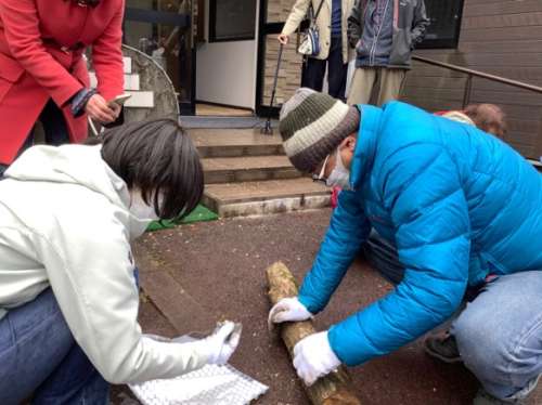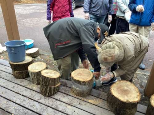 皆様で協(xié)力しながら『椎茸』と『ナメコ』の菌打ちに