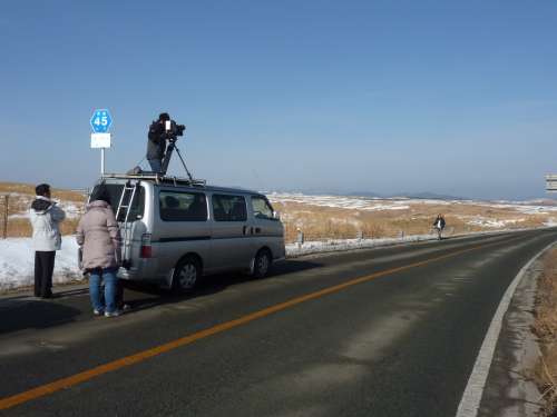 通り過ぎる車は撮影をしている我々に興味深々で通り過ぎていきました。