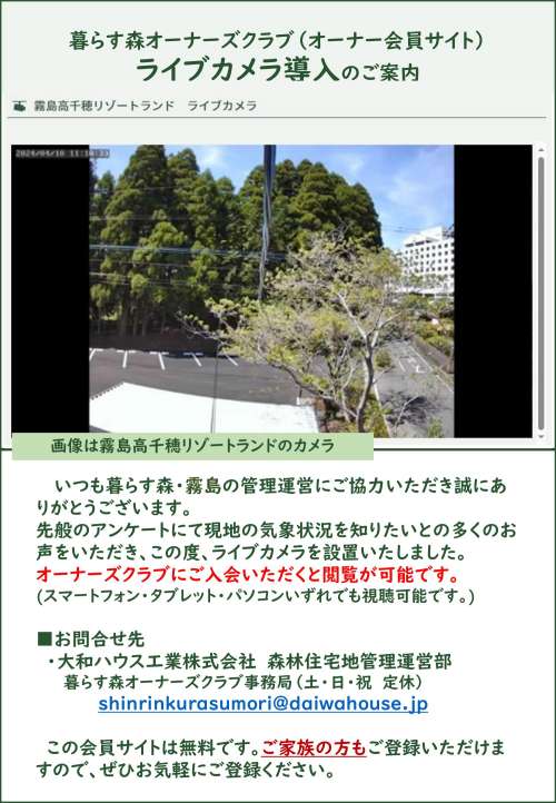 ※ライブカメラが視聴できるのはオーナーアカウントのみになります(ゲストアカウントは視聴できません)