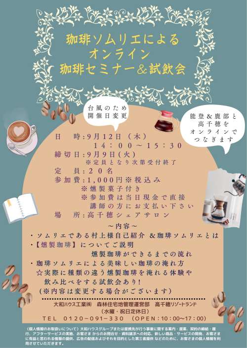 臺風に伴い『珈琲セミナー』日程変更のお知らせ