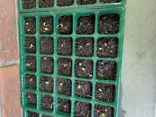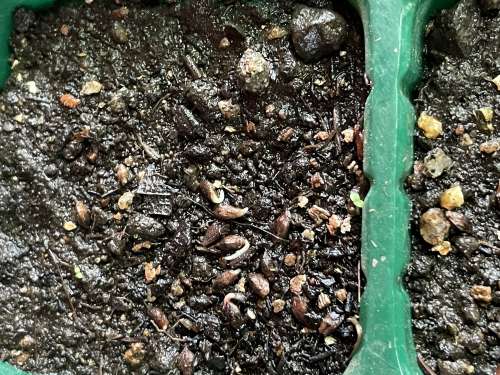 藍(lán)は小さな種なので見つけずらいですが、小さい根が出始めていました