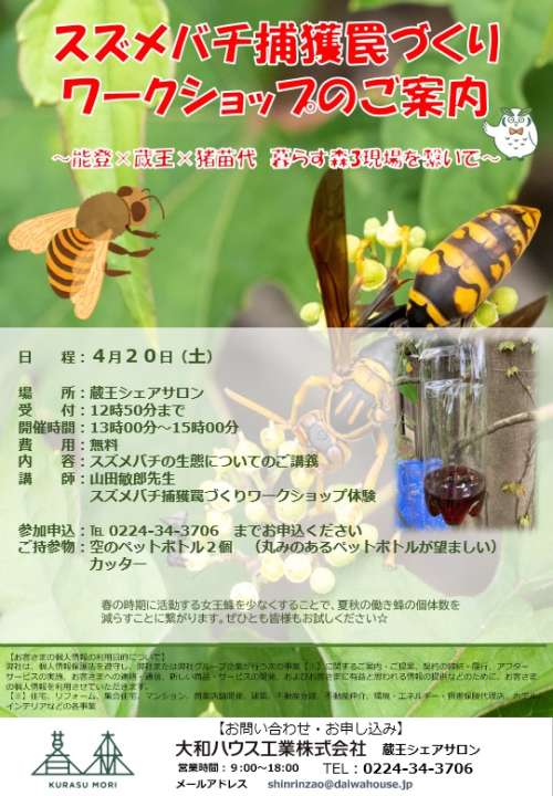 ■□■□■ スズメバチ捕獲イベントを開催いたします ■□■□■