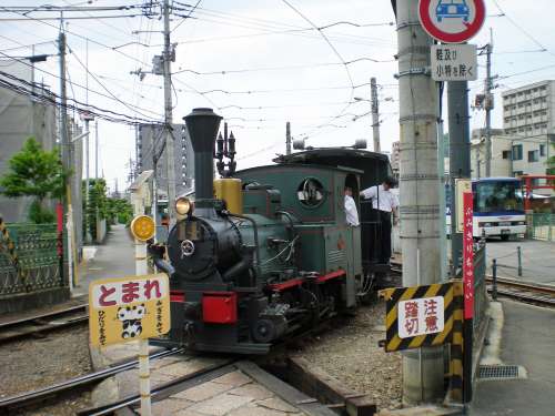 明治の頃、松山市民の足として大活躍をしたこの汽車が復元され、現在松山市內を走っています。 (松山市は分譲地より約84kmです。)
