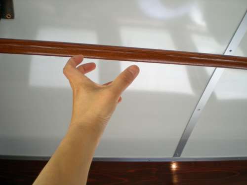 つり革のかわりに天井には