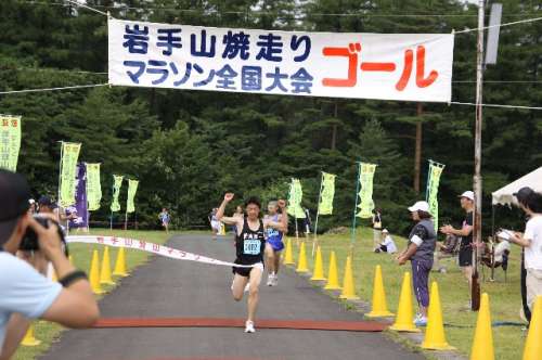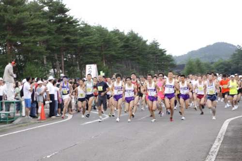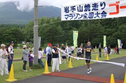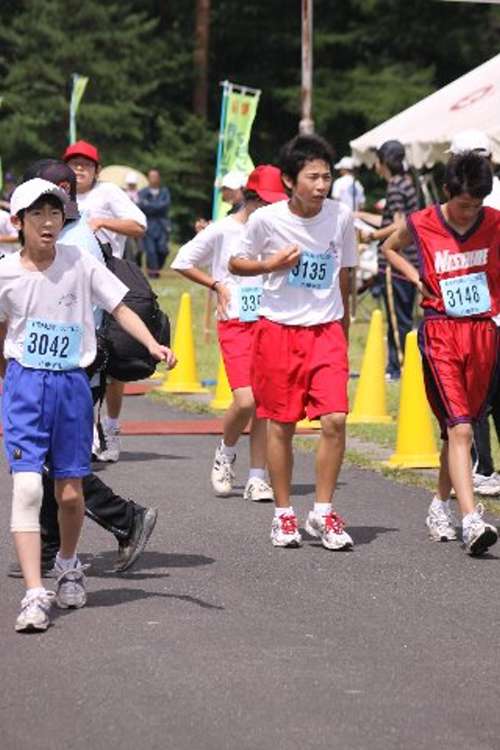 雄大な巖手山の裾野を走るコースは、年々人気が高まっていて、今大會には東北各県だけでなく首都圏からも、最も遠來は広島県からの參加もありました。年齢層も幅広く、最高齢は男子86歳、女子71歳の方でした。2kmのファミリー部門には、なんと0歳の男の子も參加していました。文字通り老若男女が、濃い緑と爽やかな空気に包まれたコースを舞臺に、自己記録の更新を目指し、また周辺の景観を楽しみながら、完走が目的などなど、思い思いの目標を胸に參加しているようでした。