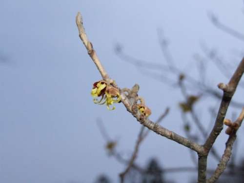 こちらは、別荘地內に自生しております、マンサクの花でございます。咲き始めで、いささか寂しいような気もしなくもありません???。園蕓品種とは違って、時勢のものは花の數も少ないとか。でも、野生の逞しさはあります。
