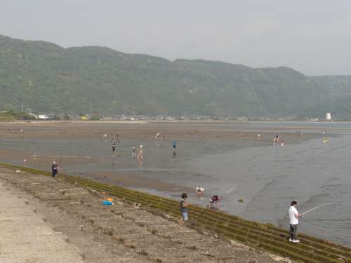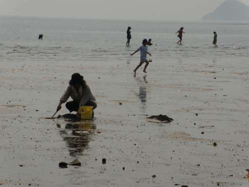 干潟では潮干狩りをされる方、小さなお子様は、海洋生物のヤドカリ、カニなどの採取をして楽しんでいました。